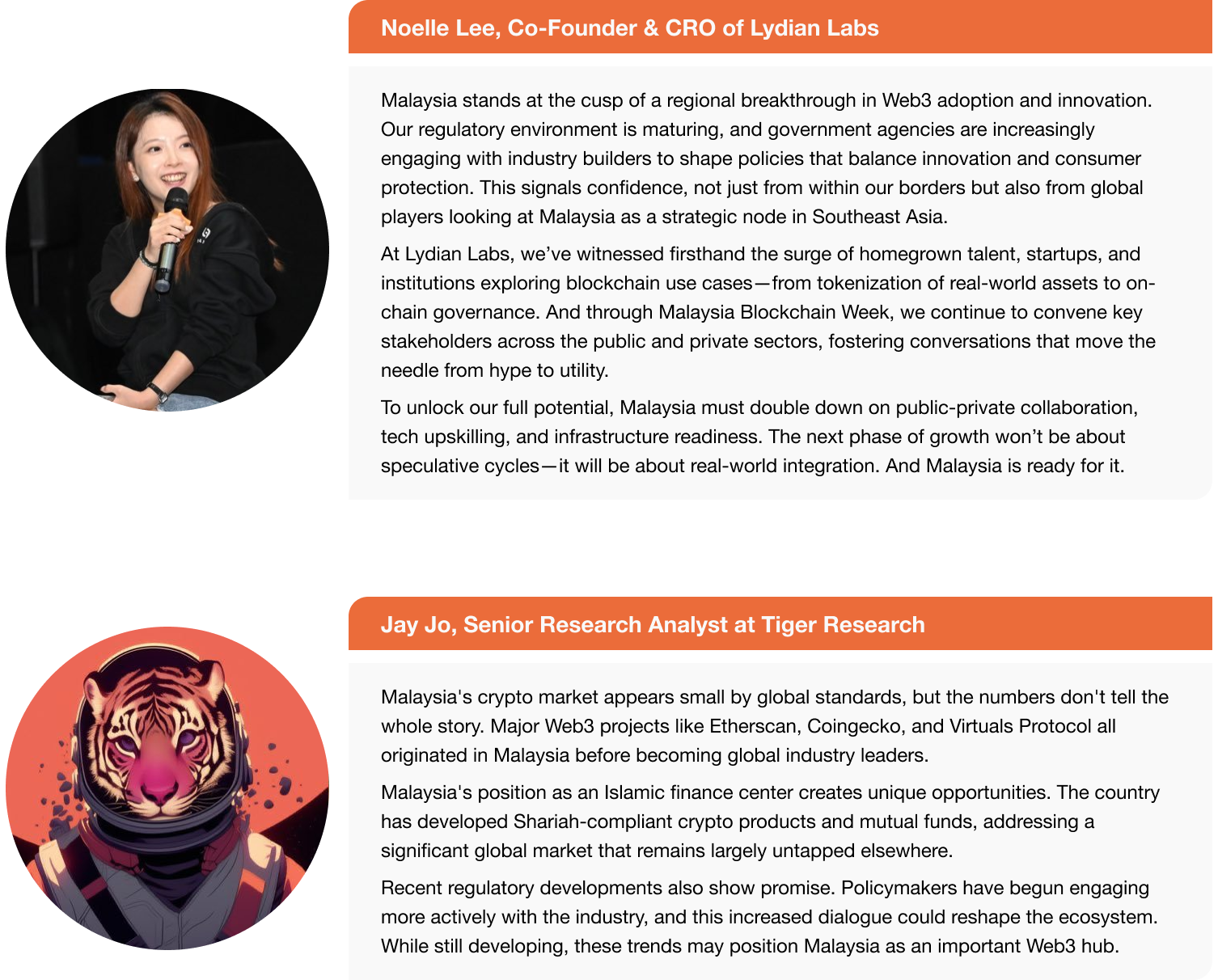 Government involvement signals Malaysia's crypto ecosystem moving toward institutional acceptance. The event connected diverse industry participants and expanded government-private sector communication channels. Tiger Research conducted interviews with officials, experts, and local teams during the event. These conversations provided on-ground insights that strengthen this report's analysis.