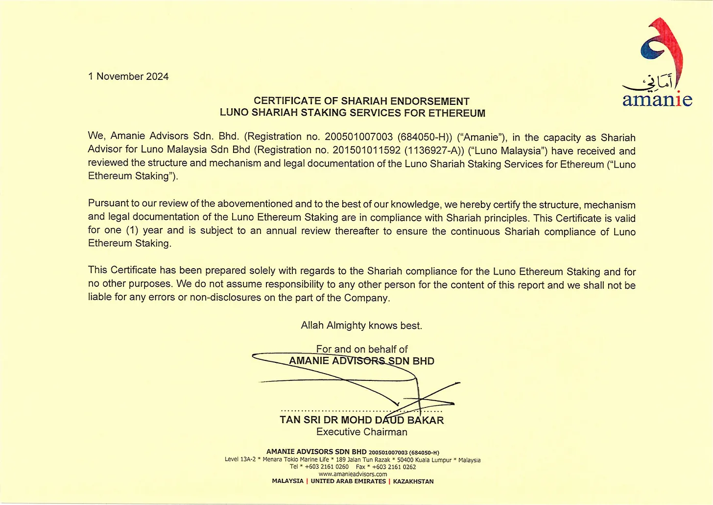 Karakteristik ini turut membentuk industri kripto. Malaysia menjadi negara pertama yang mengakui kripto sebagai aset yang sesuai Syariah. Hingga saat ini, 15 aset digital telah disetujui sebagai Syariah-compliant, termasuk Bitcoin. Semua operator pasar aset digital yang diakui di Malaysia harus mematuhi Syariah. Bursa lokal Luno dan Hata keduanya mengikuti persyaratan ini.