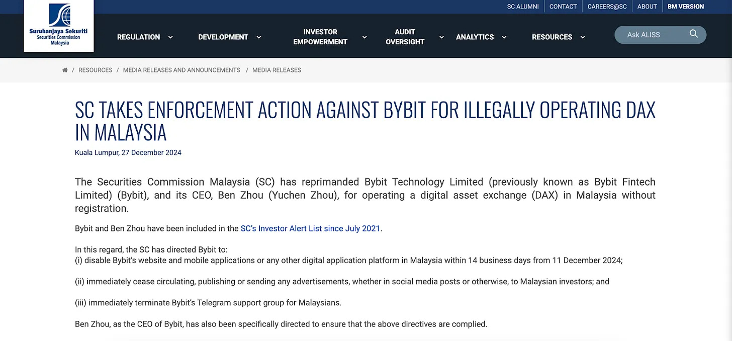 SC membuat daftar "Investor Alert List" untuk memperingatkan para pengguna. Daftar ini mencakup nama exchanges global seperti Binance dan Bybit, disertai peringatan bahwa perdagangan melalui platform tersebut tidak dilindungi oleh hukum Malaysia.