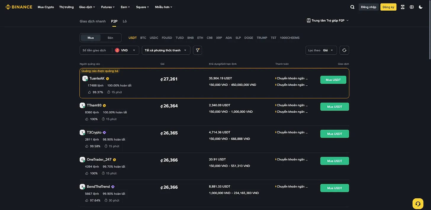 Karena pengguna di Vietnam tidak dapat langsung membeli atau menjual aset kripto melalui rekening bank lokal akibat belum adanya exchanges teregulasi atau jalur fiat onramp perdagangan peer-to-peer (P2P) telah menjadi infrastruktur penting dalam ekosistem kripto lokal. Platform seperti Binance P2P memungkinkan pengguna membeli dan menjual stablecoin menggunakan mata uang lokal VND melalui transfer bank domestik.