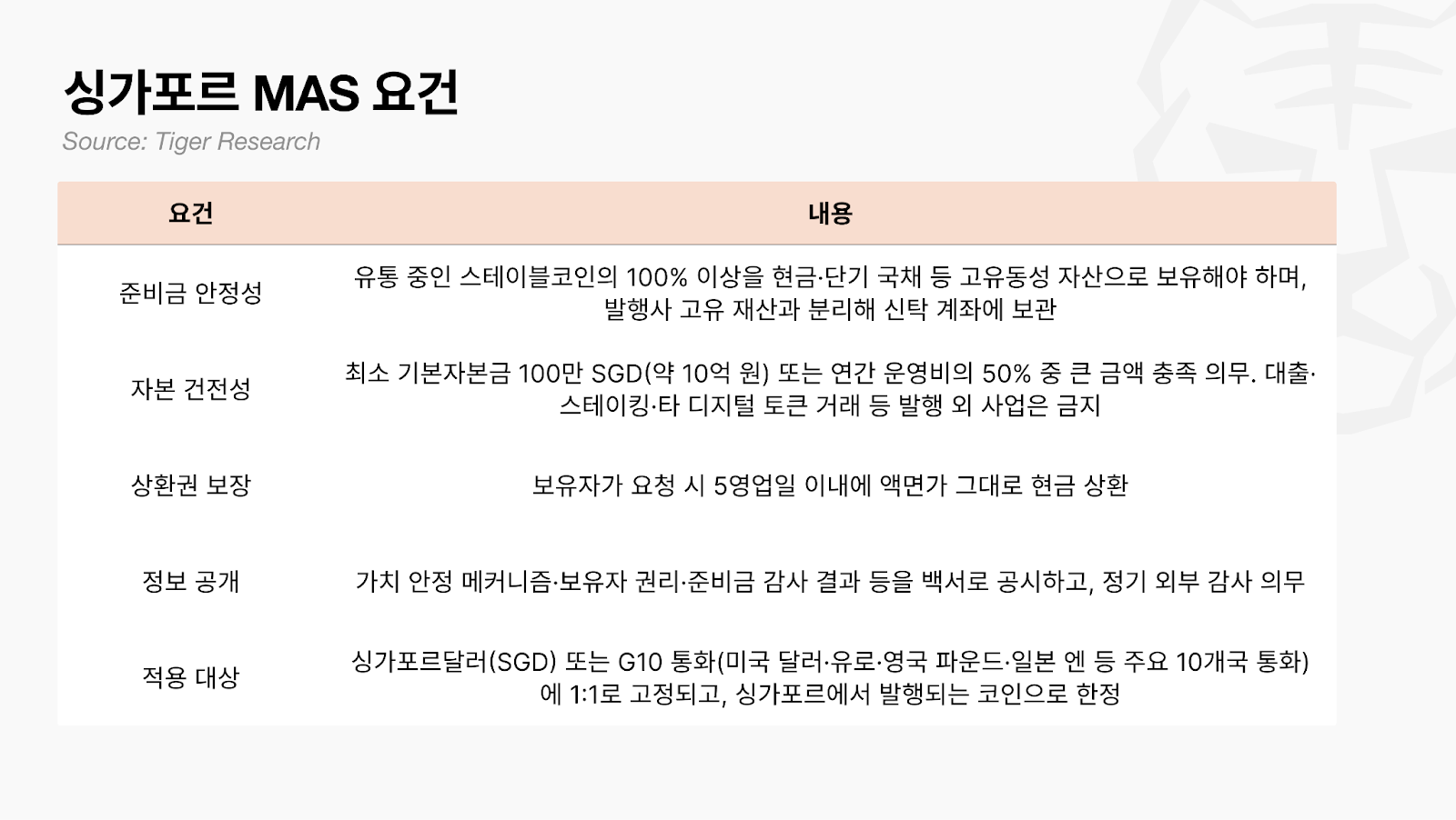 역외에서 발행된 스테이블코인도 싱가포르 내에서 유통·거래 자체는 가능하지만, 기존 DPT 규제만 적용될 뿐 이 라벨은 사용할 수 없다. 즉, SCS 프레임워크가 제공하는 준비금·상환 보호 장치 없이 이용자 본인 책임 하에 사용되는 셈이다.