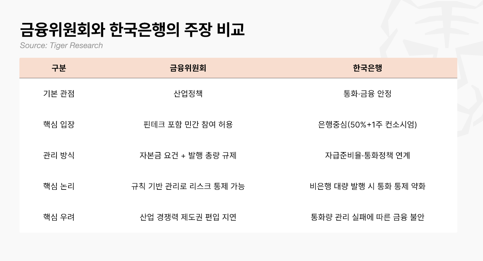 이 논쟁은 단순한 부처 간 권한 다툼이 아니다. 발행 주체의 범위가 어디까지 열리느냐에 따라 시장 구조 자체가 달라진다. 은행으로 한정하면 안정성은 확보되지만 혁신 속도가 느려진다. 핀테크까지 열면 경쟁은 치열해지지만, 대규모 상환 사태(bank run) 발생 시 비은행 발행사의 안전망이 충분한지는 아직 검증되지 않았다.