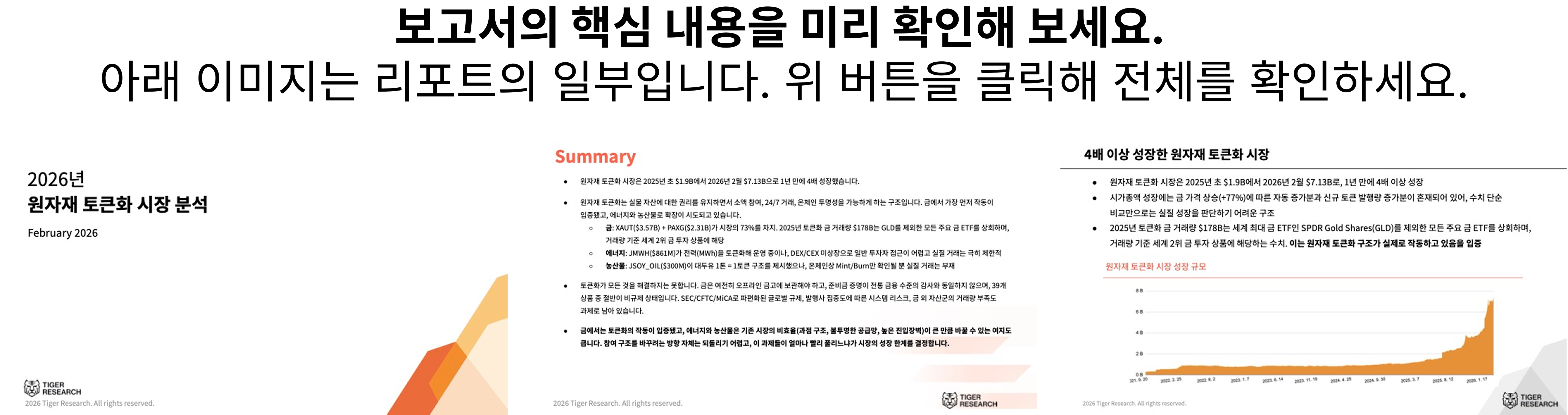 금에서는 토큰화의 작동이 입증됐고, 에너지와 농산물은 기존 시장의 비효율(과점 구조, 불투명한 공급망, 높은 진입장벽)이 큰 만큼 바꿀 수 있는 여지도 큽니다. 참여 구조를 바꾸려는 방향 자체는 되돌리기 어렵고, 이 과제들이 얼마나 빨리 풀리느냐가 시장의 성장 한계를 결정합니다.