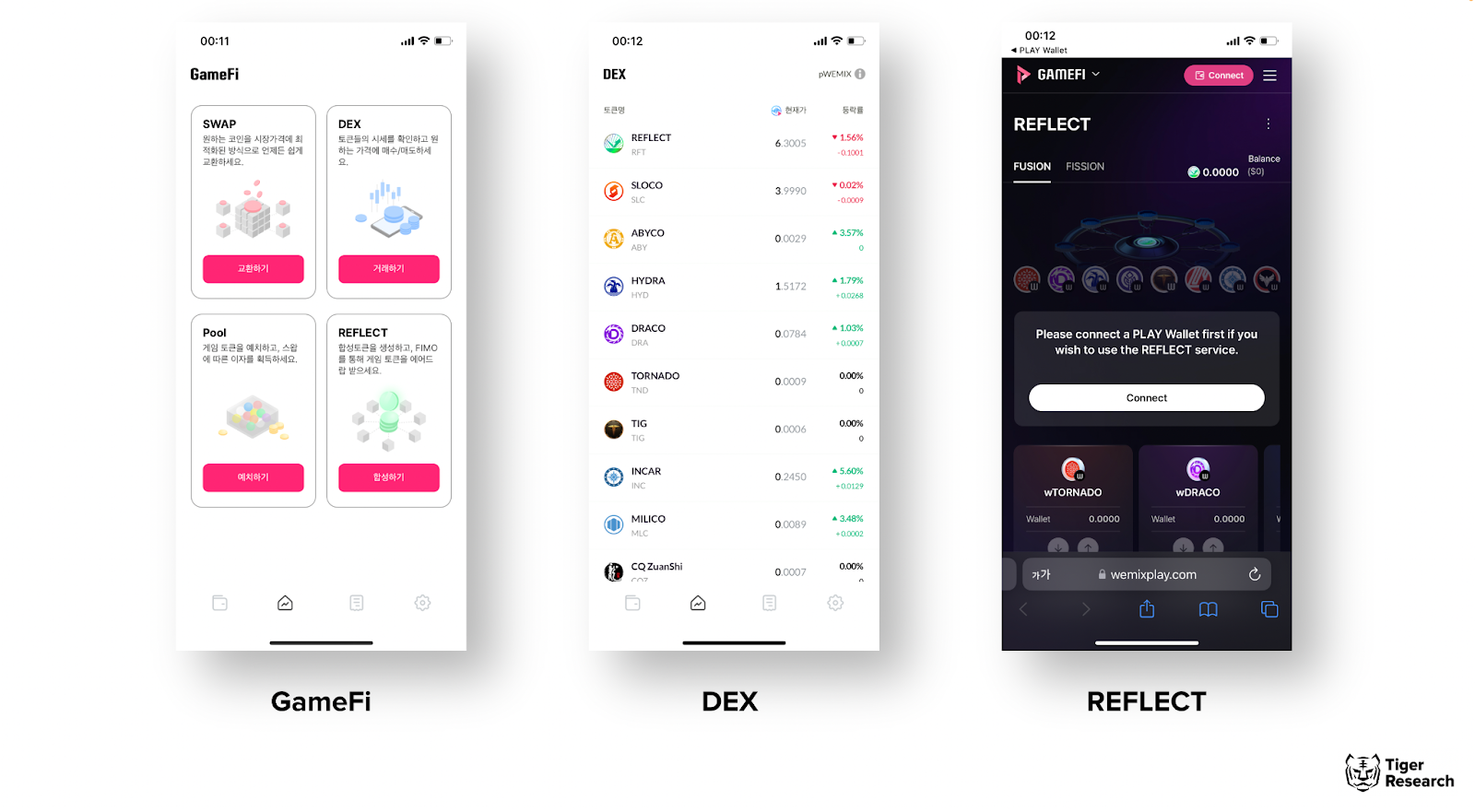 REFLECT는 WEMIX PLAY 생태계 안에서 REFLECT Alliance 멤버로 검증된 특정 게임 토큰들을 일정 비율에 맞춰 락업시켜 생성할 수 있는 합성 토큰을 칭한다. 해당 합성 토큰은 WEMIX PLAY 생태계 안에서 1) 게임 토큰 락업 2) 소각 3) 신규 게임 온보딩 등 토큰의 거래량에 촉매제 역할을 수행한다. 먼저, 유저가 일정 비율의 게임 토큰을 락업시켜야 합성 토큰을 얻을 수 있기에 락업 효과를 거둘 수 있. 또한 유저가 합성한 REFLECT를 분해하여 다시 게임 토큰을 받을 때 5%의 토큰이 소각되기 때문에 인플레이션을 방지하는 소각 효과를 거둘 수 있다. 마지막으로 REFLECT를 갖고 있는 유저는 새롭게 Alliance에 합류한 게임의 토큰을 에어드랍받을 수 있어, 신규 게임 온보딩 시 해당 생태계를 이용 중인 유저를 쉽게 유치할 수 있는 효과를 볼 수 있다.