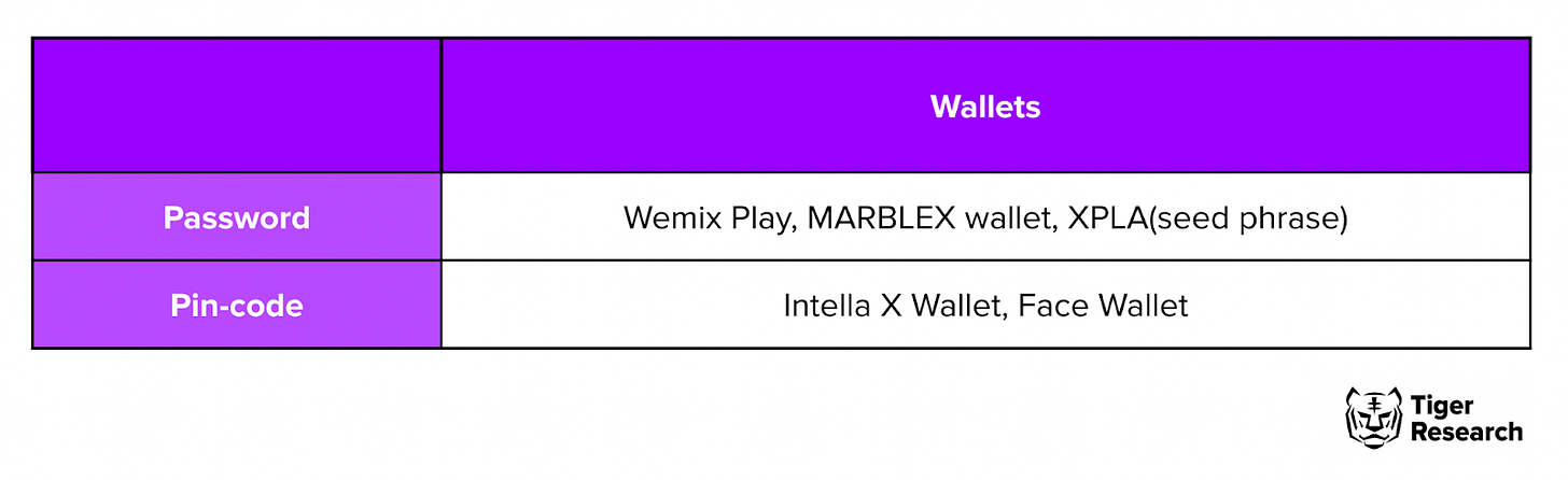 메타마스크 지갑 역시 패스워드를 통한 로그인을 지원하지만 계정 복구를 위한 시드 구문을 별도로 제공하고 있다. 하지만 현재 소셜 로그인을 지원하지 않는 XPLA Vault를 제외하고, 위메이드의 플레이 월렛을 비롯하여 대다수의 지갑은 시드 구문을 별도로 제공지않는데 이는 대중들의 쉬운 온보딩을 고려한 것이라 생각된다.