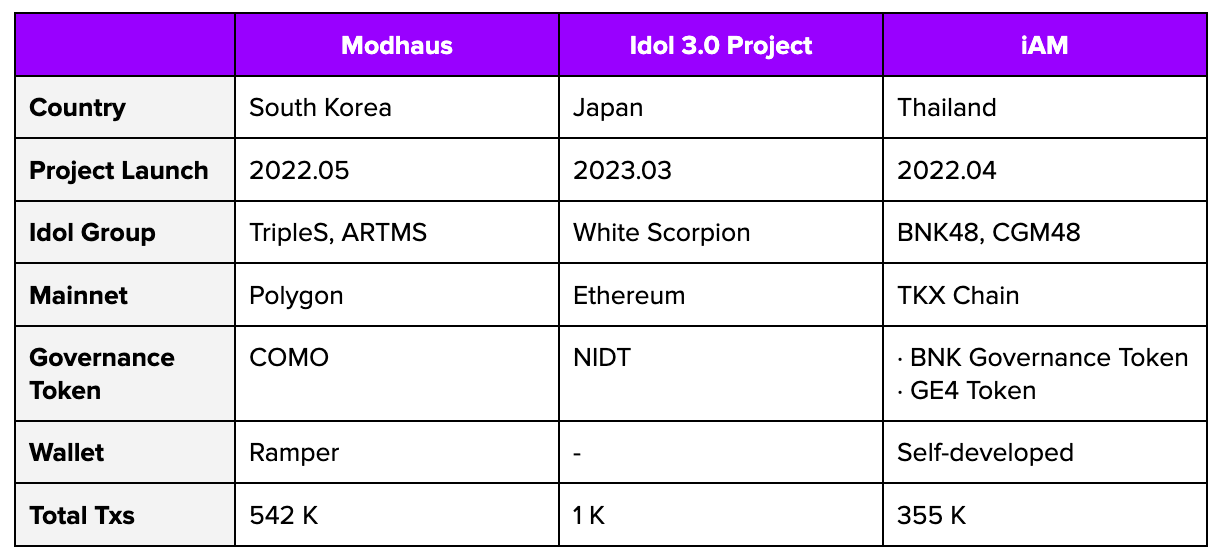 Token-based Web3 idol projects in Korea, Japan, and Thailand