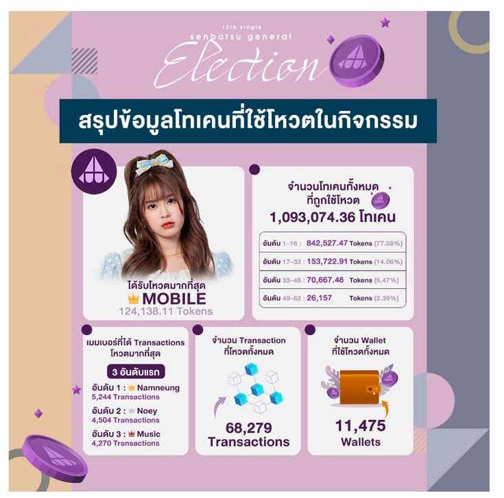 Lastly, blockchain technology records fans' participation activities, ensuring a fair and transparent process. This approach is an important solution to the trust issues that have plagued the entertainment industry in the past, especially vote manipulation in idol group auditions such as Produce 101. This is because blockchain technology records all voting results and participation activities transparently, ensuring a fair outcome without fraud. During BNK48's general voting process, fans were able to count the number of votes for each member directly, which shows that anyone can easily verify and validate the data.
