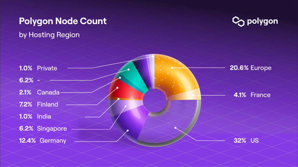 이처럼 로컬 블록체인은 현지 시장에 있어 여러 전략적 이점을 갖는다. 하지만 지역에 한정된 특성이 오히려 한계점으로 다가오기도 한다. 첫 번째로, 로컬 프로젝트는 높은 탈중앙화를 달성하기 어렵다는 한계가 있다. 주로 자신이 속한 지역의 기업들이 노드 검증자로 참여하기 때문인데, 실제로 현재 클레이튼 노드 검증자의 절반 가까이가 국내 소재 기업이며, 노드 검증자의 전체 스테이킹 비율 중 30% 가량이 카카오 계열사인 것을 알 수 있다. 반면, 글로벌 프로젝트인 폴리곤의 노드 검증자 지역 분포는 비교적 넓게 분포되어있고, 이는 로컬 블록체인의 낮은 탈중앙성과 대비되는 대목이다.