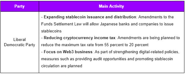 In general, Asian countries have an active and positive attitude towards crypto markets across party lines. However, the risks of business operation may change depending on the ruling party. Considering these political temperature differences in your go-to-market strategy is crucial. Therefore, it is important to closely examine various opinions and policy trends by country and political party, and formulate your strategy accordingly.