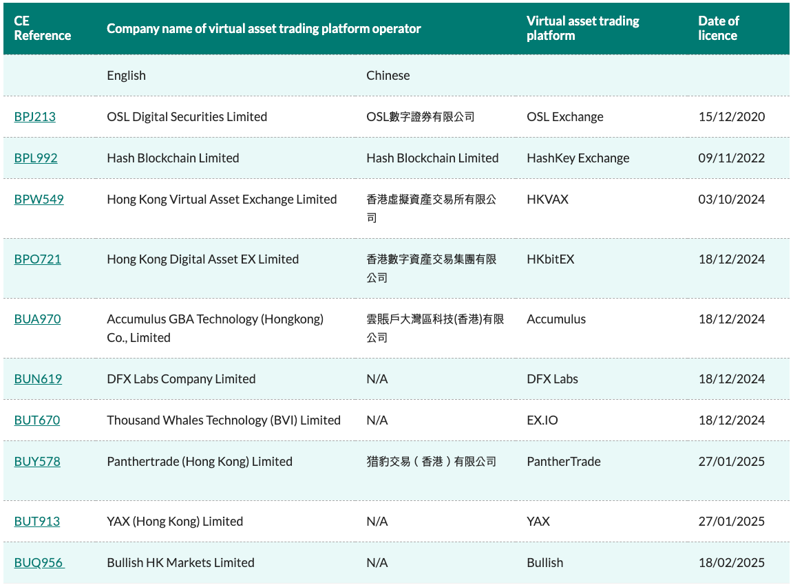 Building upon the retail exchange licensing framework introduced in 2023, the SFC has approved a total of ten virtual asset trading platform licenses by the end of Q1 2025. For example, Bullish HK Markets Limited secured licenses in February 2025, enabling it to operate as a virtual asset trading platform under Hong Kong's regulatory framework.