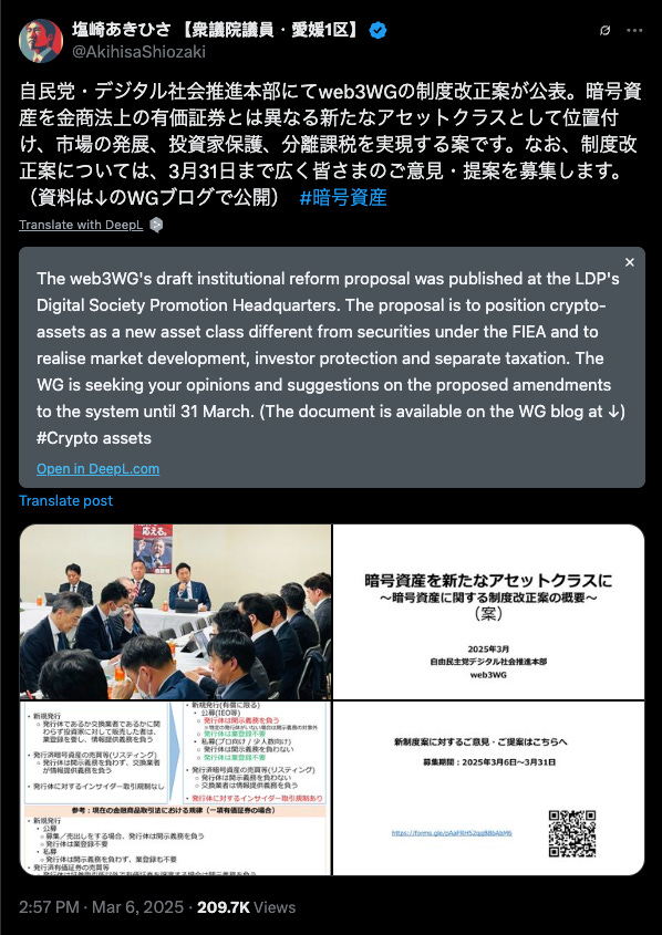 In the first quarter of 2025, Japan expanded its role to the international stage. The Asia Web3 Alliance submitted a proposal to the U.S. SECās Crypto Task Force, calling for deeper U.S.āJapan cooperation on token classification and cross-border regulatory standards.