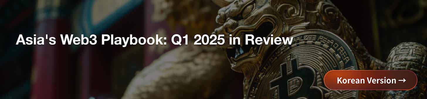 In the first quarter of 2025, Asiaās Web3 market continued to advance. While Western markets remained focused on political and regulatory uncertainty, governments across Asia took concrete steps forward. Across the region, authorities introduced new legislation, issued licenses, launched regulatory sandboxes, and expanded cross-border cooperation.