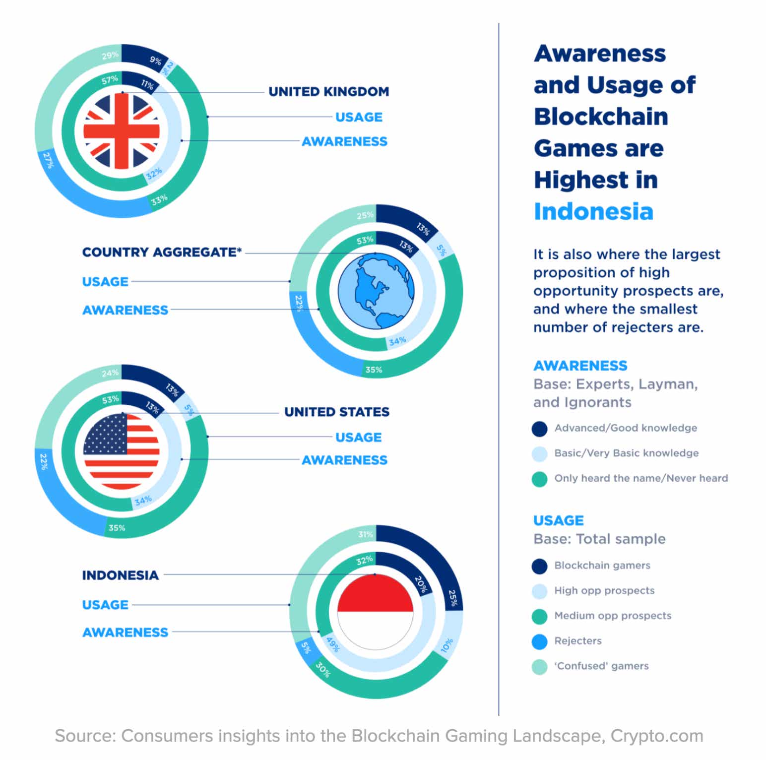 According to a study conducted by global cryptocurrency exchange Crypto.com, Indonesian gamers show a higher rate of participation in blockchain games than their counterparts in the United States and the United Kingdom. Furthermore, the level of resistance towards blockchain gaming is significantly lower in Indonesia.