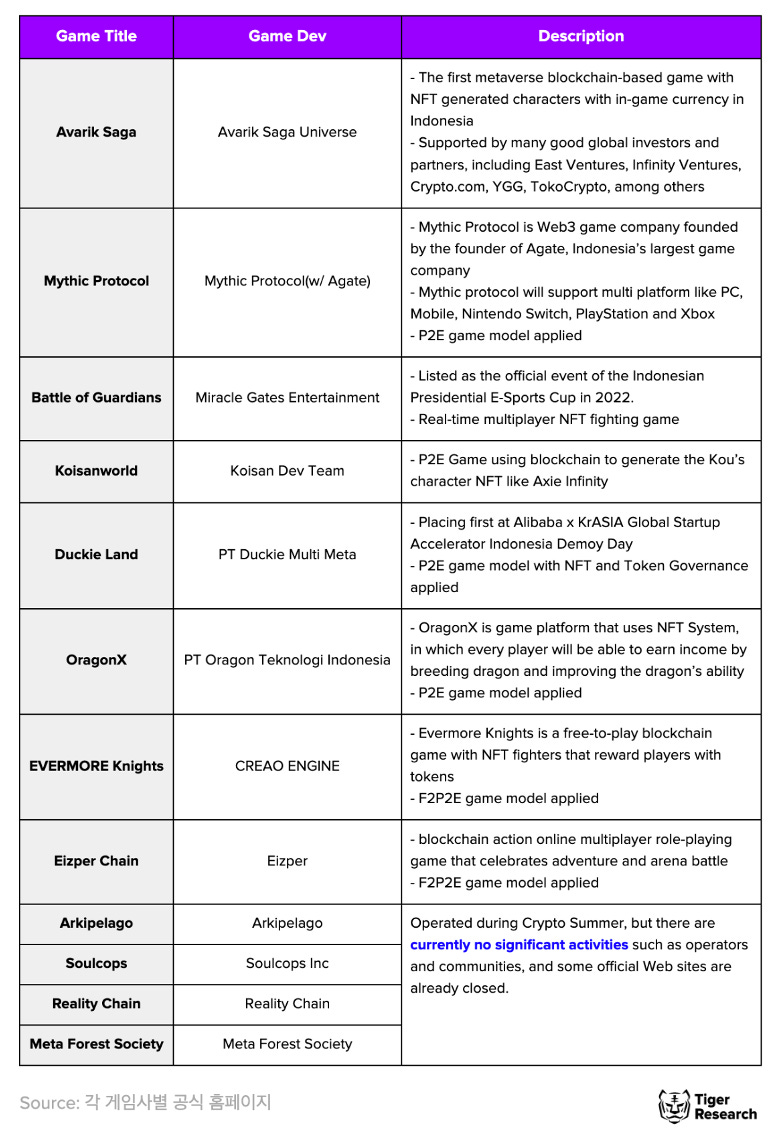Up until recently, various genres of games have been launched and gained popularity in the Indonesian blockchain gaming market. However, unlike Vietnam's Axie Infinity, no representative game has yet dominated the domestic market. As a result, the competition between game companies has intensified, transforming Indonesia into a battleground for blockchain gaming.
