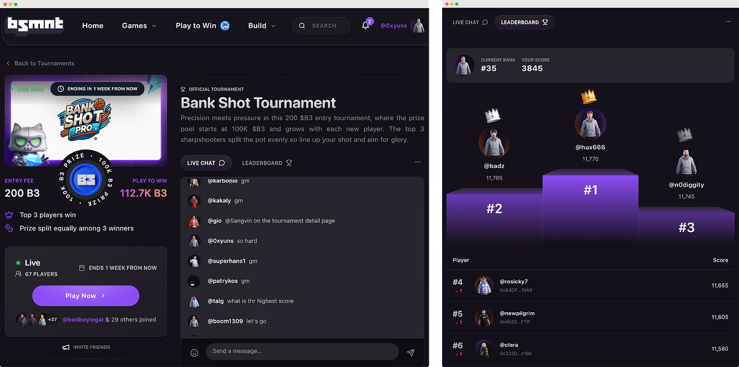 Lebih dari sekadar platform game, Basement.fun juga berfungsi sebagai hub sosial yang memfasilitasi interaksi dan komunikasi antar pemain. Platform ini mendukung pengalaman yang imersif melalui turnamen “Play-to-Win” secara live, baik dalam format kompetitif maupun kolaboratif, di mana seluruh aktivitas gameplay dan hadiah tercatat secara on-chain untuk memastikan transparansi penuh.