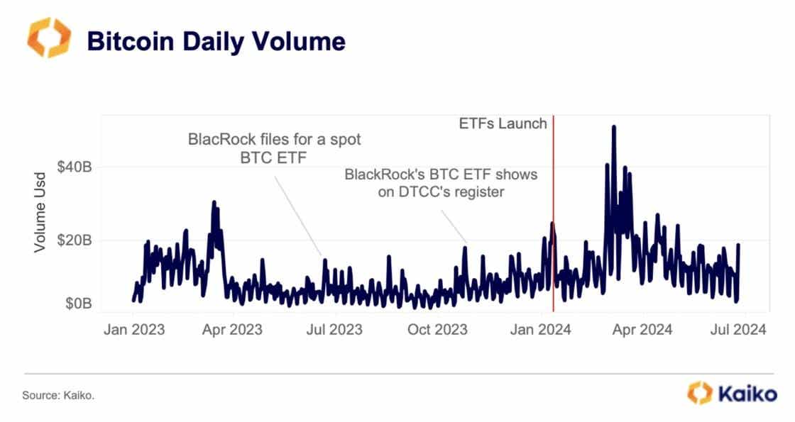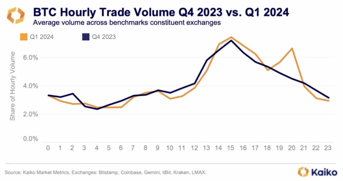 BTC ETF 승인으로 미국 시장 시간대 거래량이 증가했다.
