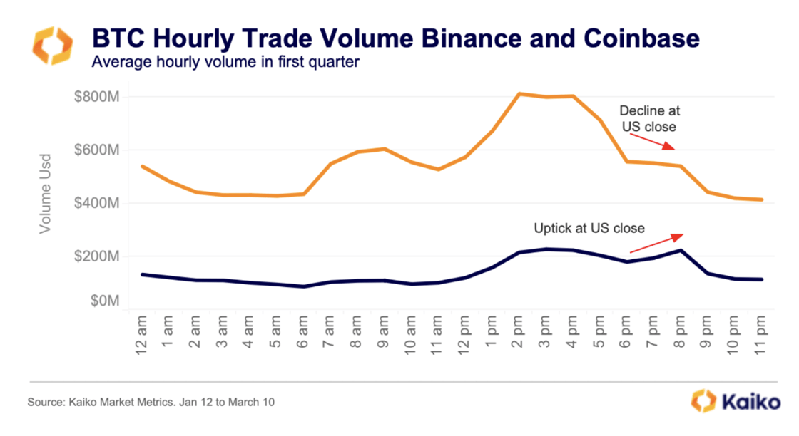카이코(Kaiko)의 조사 결과, 비트코인 기준 가격 선정에 참고되는 암호화폐 거래소들의 거래량이 증가한 것으로 나타났습니다. 특히 미국 비트코인 현물 ETF 승인 이후, 미국 시장 마감 무렵의 거래량 증가가 두드러졌습니다. 뉴욕 시간 오후 3시에서 4시(미국 시장 마감) 사이에 거래가 많아지는 이유는 ETF의 가치를 계산하는 것과 관련이 깊습니다.