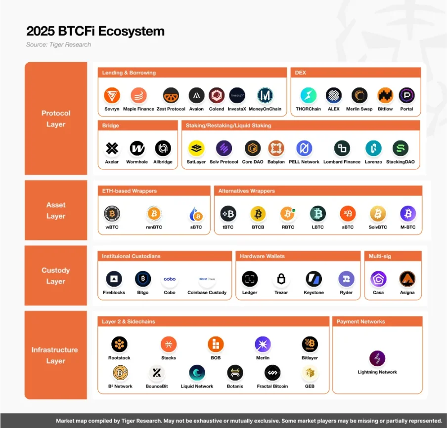 所有这些进步构成了几年前尚不存在的技术栈。比特币生态系统现已准备好围绕其核心资产构建完整的 DeFi 基础设施。