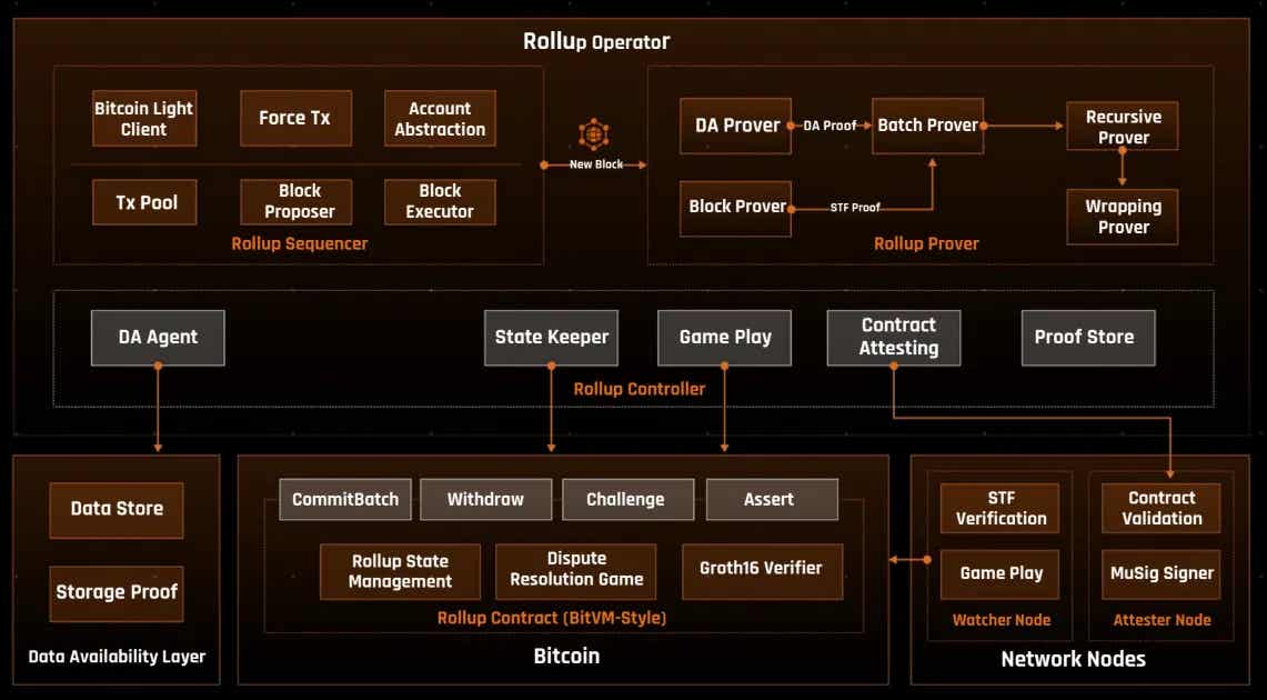 Protokol bergaya rollup bertujuan menghadirkan skalabilitas dan kemampuan pemrograman ala Ethereum ke Bitcoin, tanpa mengubah Bitcoin itu sendiri. Sistem ini mengeksekusi transaksi di luar chain dan mengunggah bukti kembali ke Bitcoin memungkinkan throughput tinggi dan dukungan smart contract sambil tetap menjadikan Bitcoin sebagai penengah akhir kepercayaan.