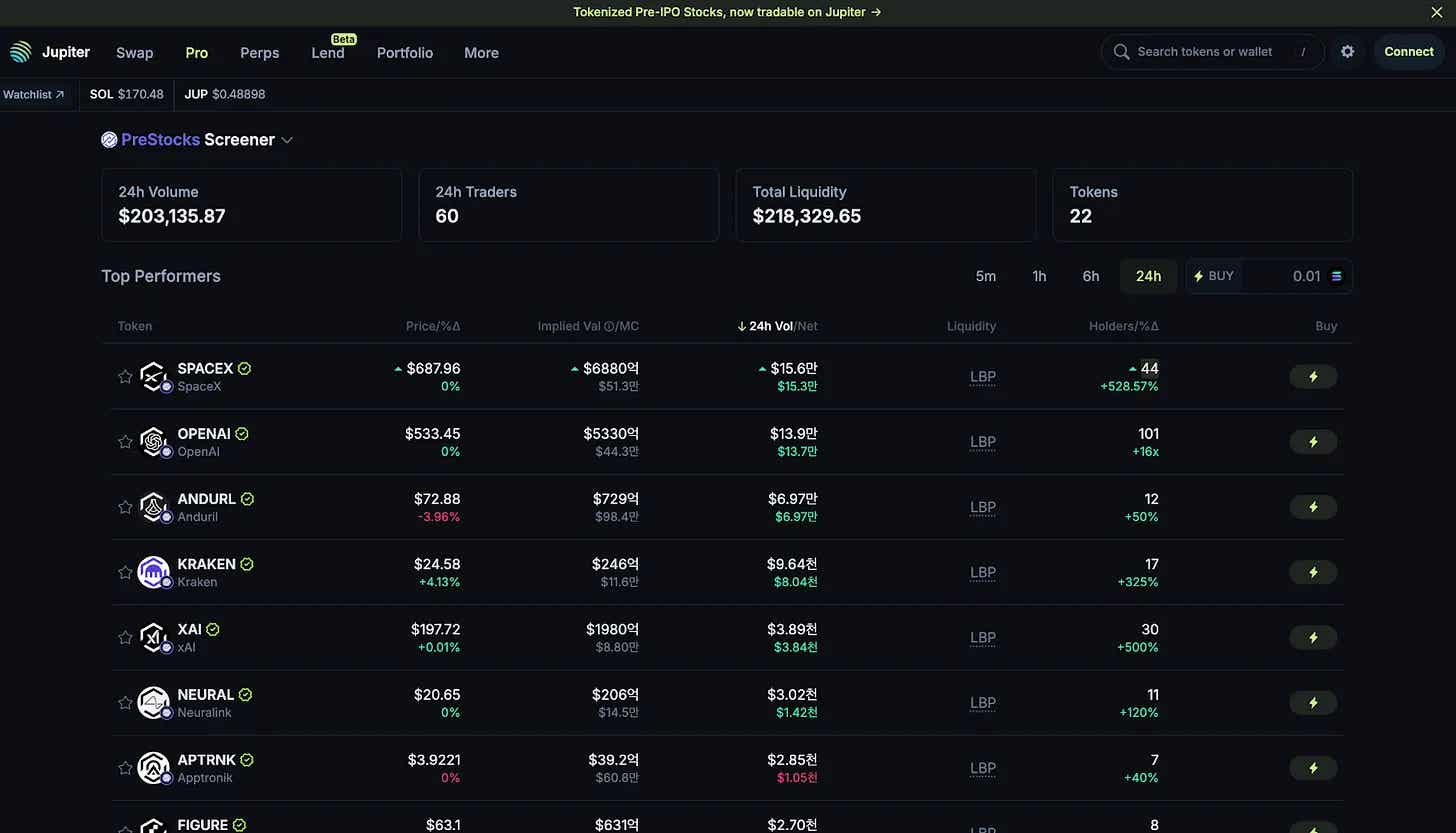 Dibandingkan dengan Jarsy, PreStocks lebih terintegrasi erat dengan decentralized exchanges (DEX), yang dapat memungkinkan lebih banyak kasus penggunaan sekunder seperti peminjaman berbasis token. Di dalam ekosistem Solana, di mana ekuitas publik yang ditokenisasi (misalnya xStock) sudah digunakan secara aktif, PreStocks mungkin mendapat manfaat dari sinergi di tingkat ekosistem.