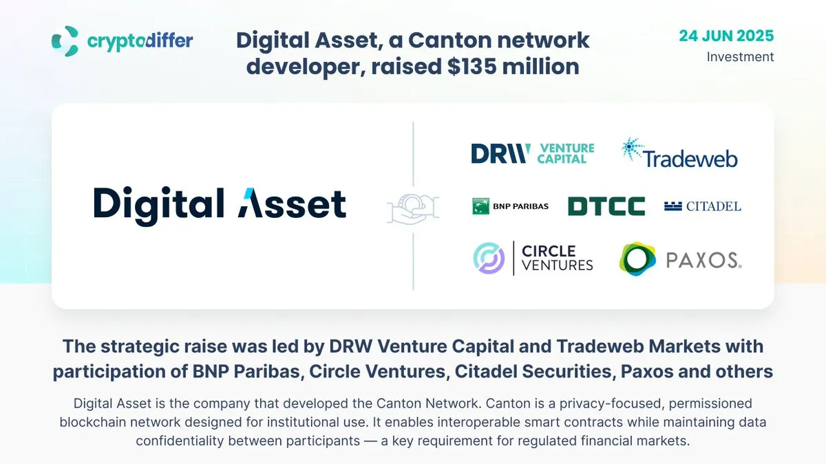 这一进展反映在融资方面。2025 年 6 月,Canton 由 DRW Trading 和 Tradeweb 领投,筹集了 1.35 亿美元,并获得了主要传统金融公司的广泛参与。这些机构不仅是投资者,也是服务和运营开发的积极贡献者。