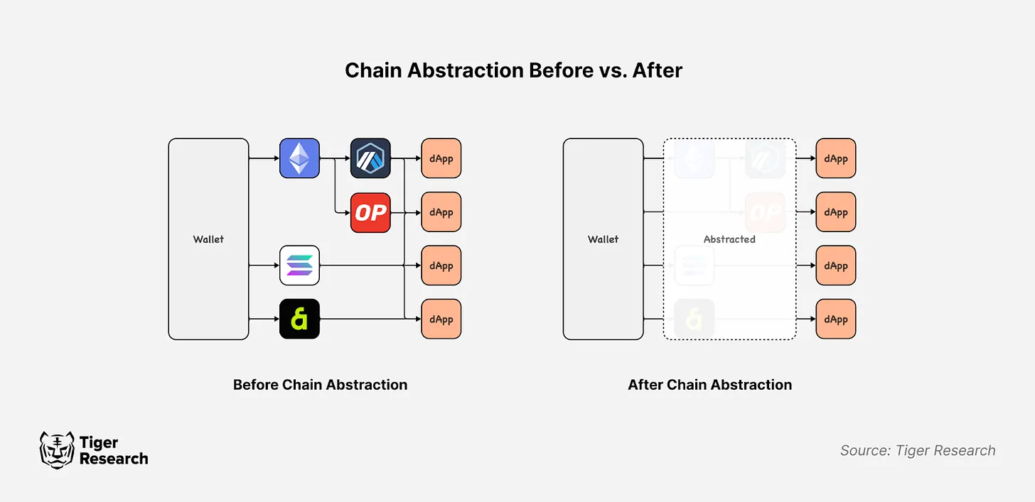 체인 추상화(Chain Abstraction, ChA)는 여러 블록체인 네트워크 사용의 복잡성을 줄이는 것을 목표로 한다. 이 기술은 사용자가 직접 처리해야 하는 수동 과정을 제거함으로써 블록체인 상호작용을 단순화한다. 때문에 업계에서는 체인 추상화를 네트워크 간 사용성 향상의 핵심 해결책으로 보고 있다.