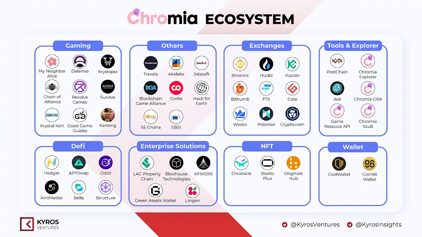 A robust Layer 1 blockchain ecosystem relies on essential components such as bridges, explorers, wallets, and various dapps. Chromia has excelled in building this comprehensive ecosystem, positioning itself as a stable and viable blockchain platform. With these foundational elements in place, Chromia is well-equipped to support a wide range of applications and drive further innovation within the blockchain space.