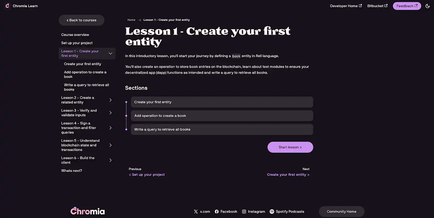 These features provide a strong competitive advantage for the Chromia platform. Developers can leverage familiar SQL-based data processing methods within a blockchain environment while benefiting from the convenience of a modern programming language. This combination lowers the barrier to entry for blockchain application development, enabling more developers to utilize blockchain technology. Chromia currently offers a variety of learning courses utilizing the Rell language, providing an excellent opportunity to experience its benefits firsthand.