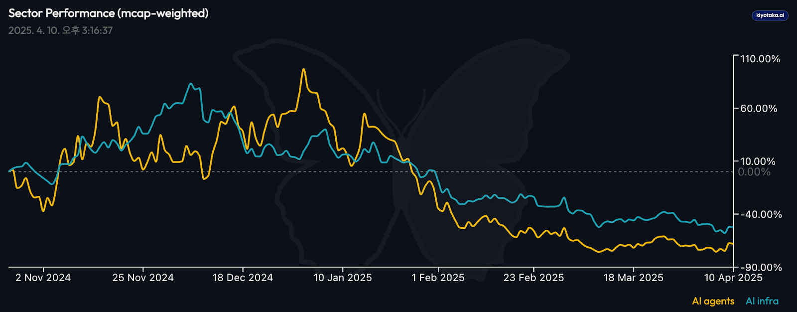 Although the AI agent market surged in late 2024, most projects offered only surface-level integrations between the two technologies. Many initiatives leaned on speculative interest in cryptocurrencies for funding and exposure, rather than exploring deep technical or functional synergies with Web3. As a result, numerous projects have seen their valuations drop by more than 90% from their peaks.