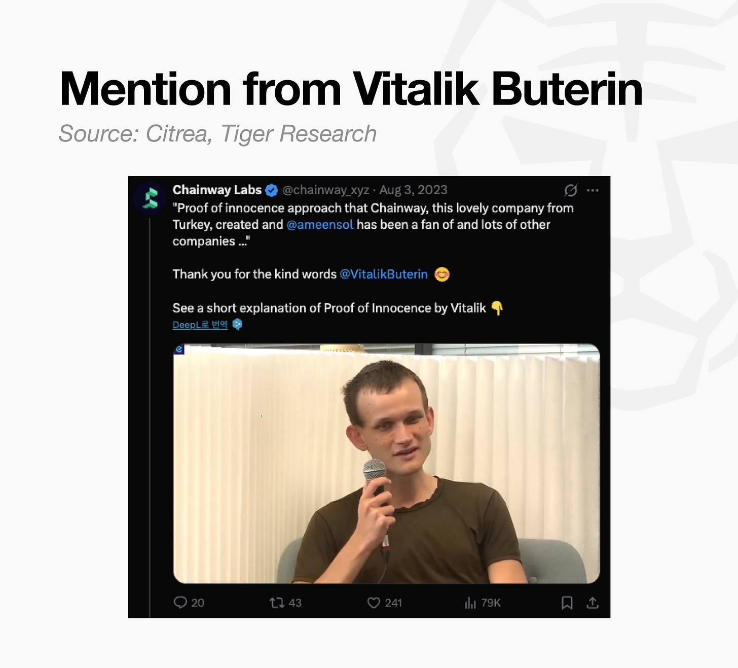 Before building on Bitcoin, the team shipped “Proof of Innocence.“ In 2022, the U.S. Treasury sanctioned Tornado Cash for money laundering. The collateral damage was immediate. Innocent users with no connection to illicit activity were treated the same.