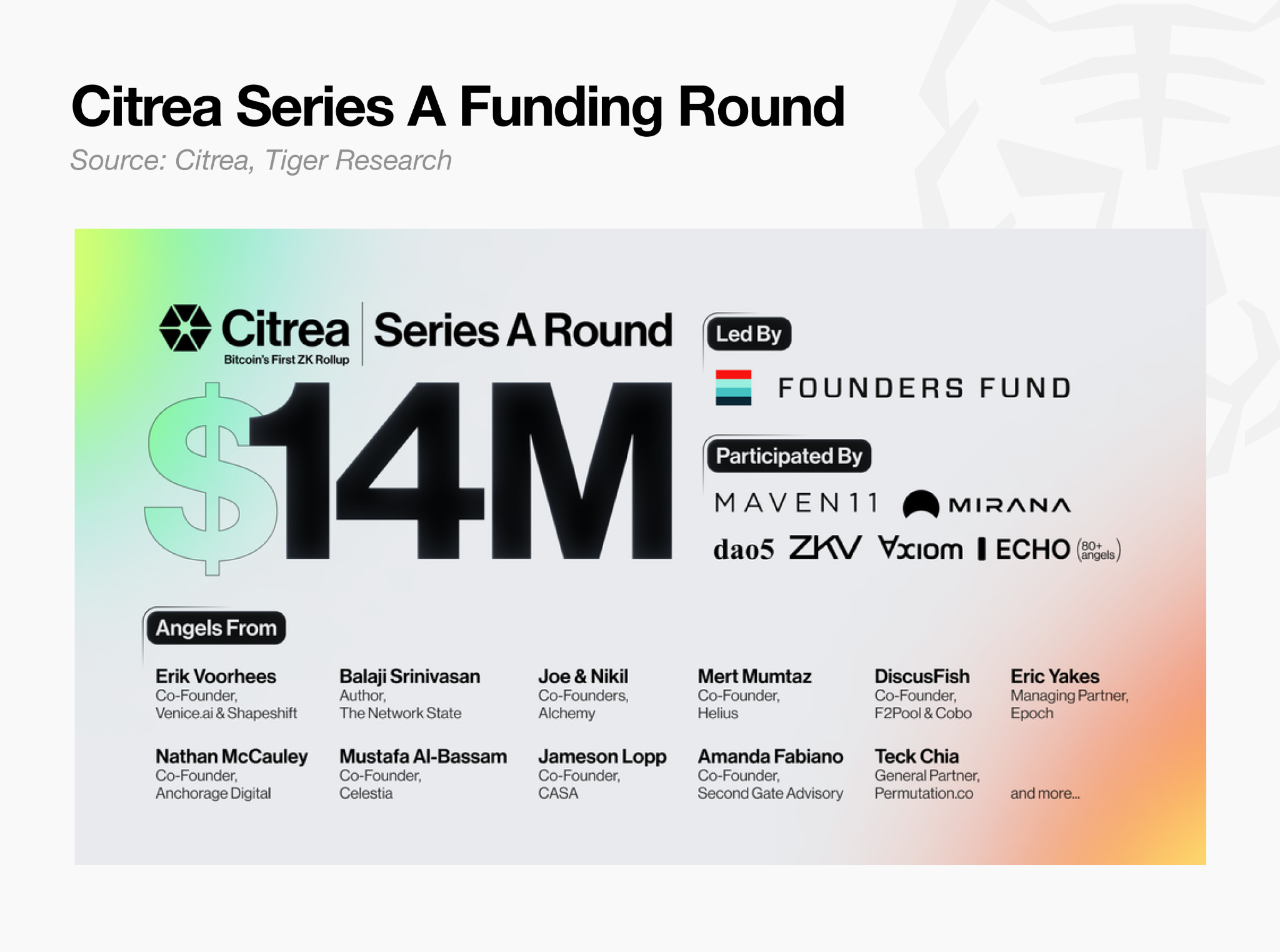 Founders Fund has a track record of identifying unique technologies (SpaceX, Palantir). Choosing Citrea at peak Bitcoin L2 disappointment follows the same pattern of technical conviction.