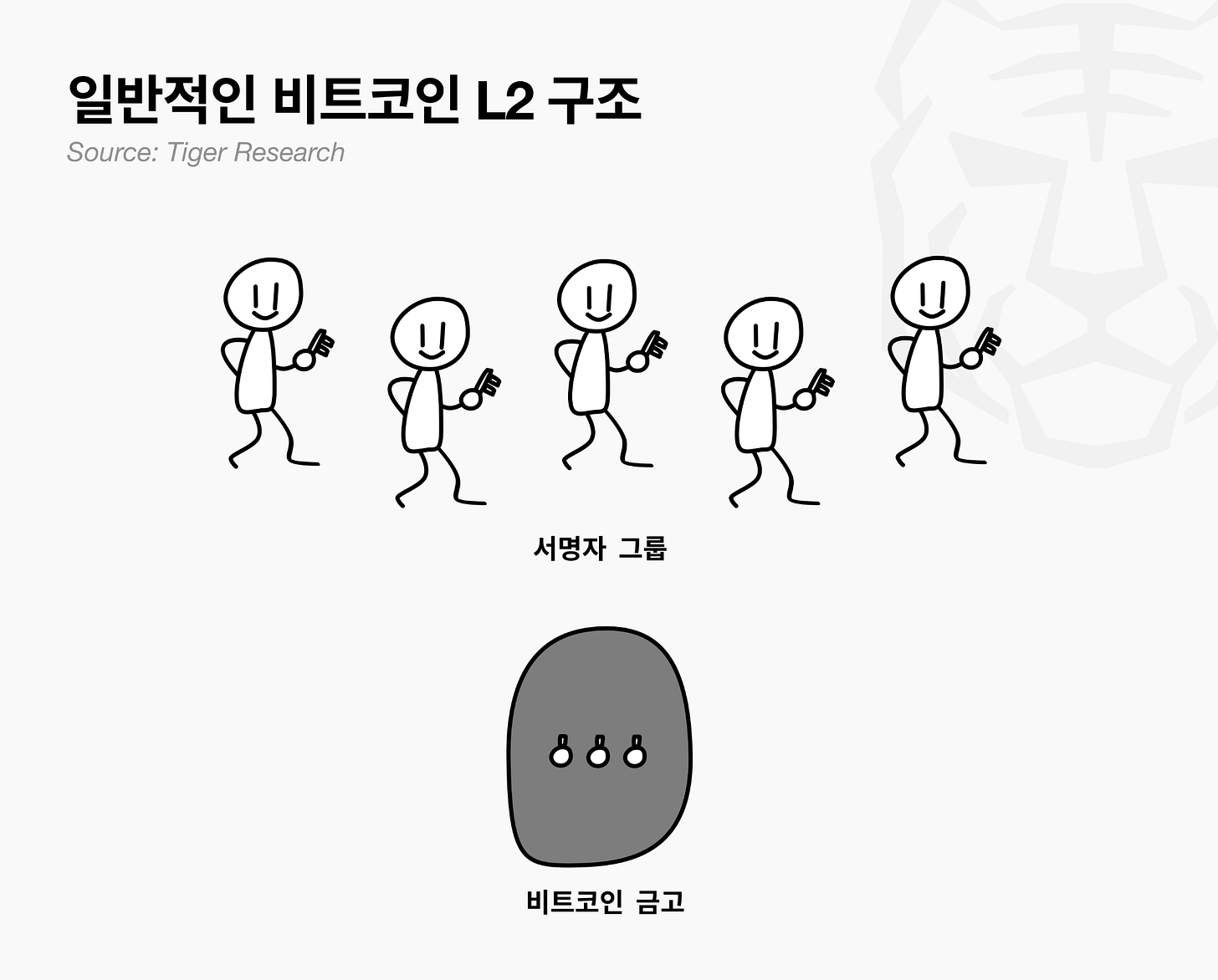 대부분의 비트코인 L2는 이 구조에서 크게 벗어나지 않았다. 세부 설계는 조금씩 달라도, 소수 서명자에게 보안을 맡기는 구조는 유사했다.