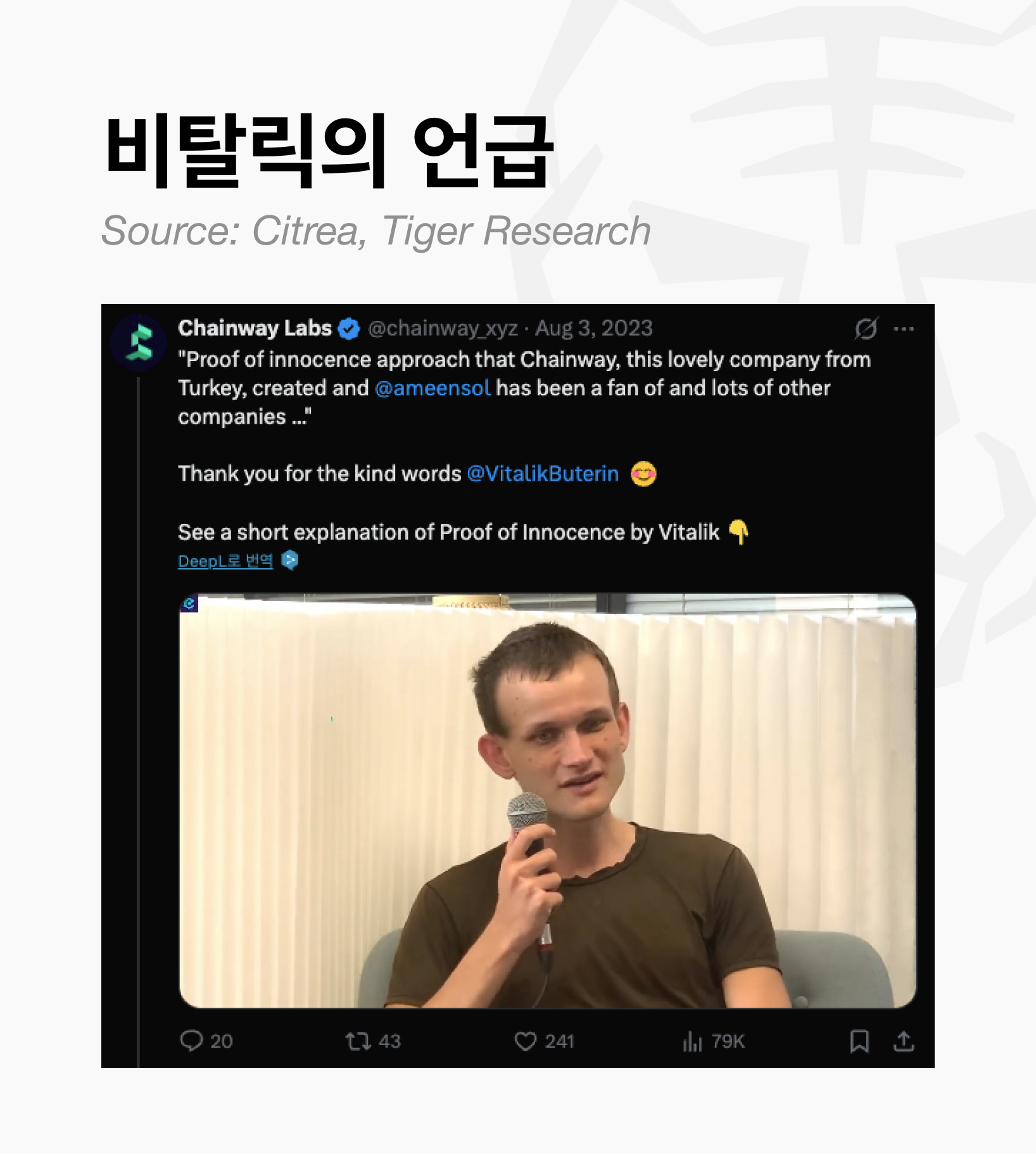 비트코인에 뛰어들기 전, 이들이 먼저 만든 건 ‘Proof of Innocence‘다. 출발점은 2022년 미국 재무부의 토네이도 캐시(Tornado Cash) 제재였다. 자금 세탁에 쓰였다는 이유였는데, 문제는 아무 잘못 없는 이용자들도 같은 취급을 받았다는 점이다.
