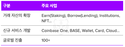 코인베이스는 이미 강력한 플랫폼을 바탕으로 더 넓은 영역으로 서비스를 확장하면서, 새로운 기회에 빠르게 대응하고자 하는 투 트랙 전략의 초기 단계로 보인다.