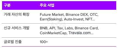 바이낸스는 활성화된 마진 거래, 선물 거래 및 늘어나는 OTC 수요에 대응하며 투자자의 편의성을 높이는 방향으로 기존 서비스를 확장하고 있다. 특히 Auto-Invest와 같은 새로운 서비스를 선보이며, 사용자 중심의 기능 개선을 추구하고 있다.
