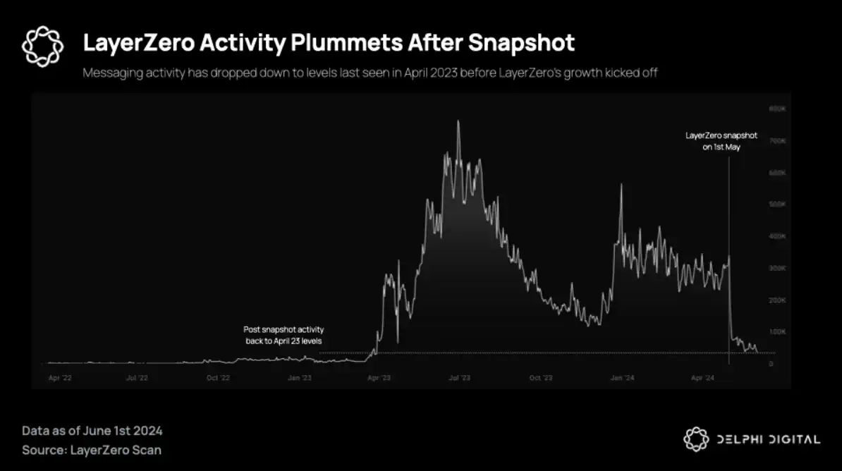 The majority of activity on all LayerZero applications (including applications like Stargate) was airdrop farming-driven