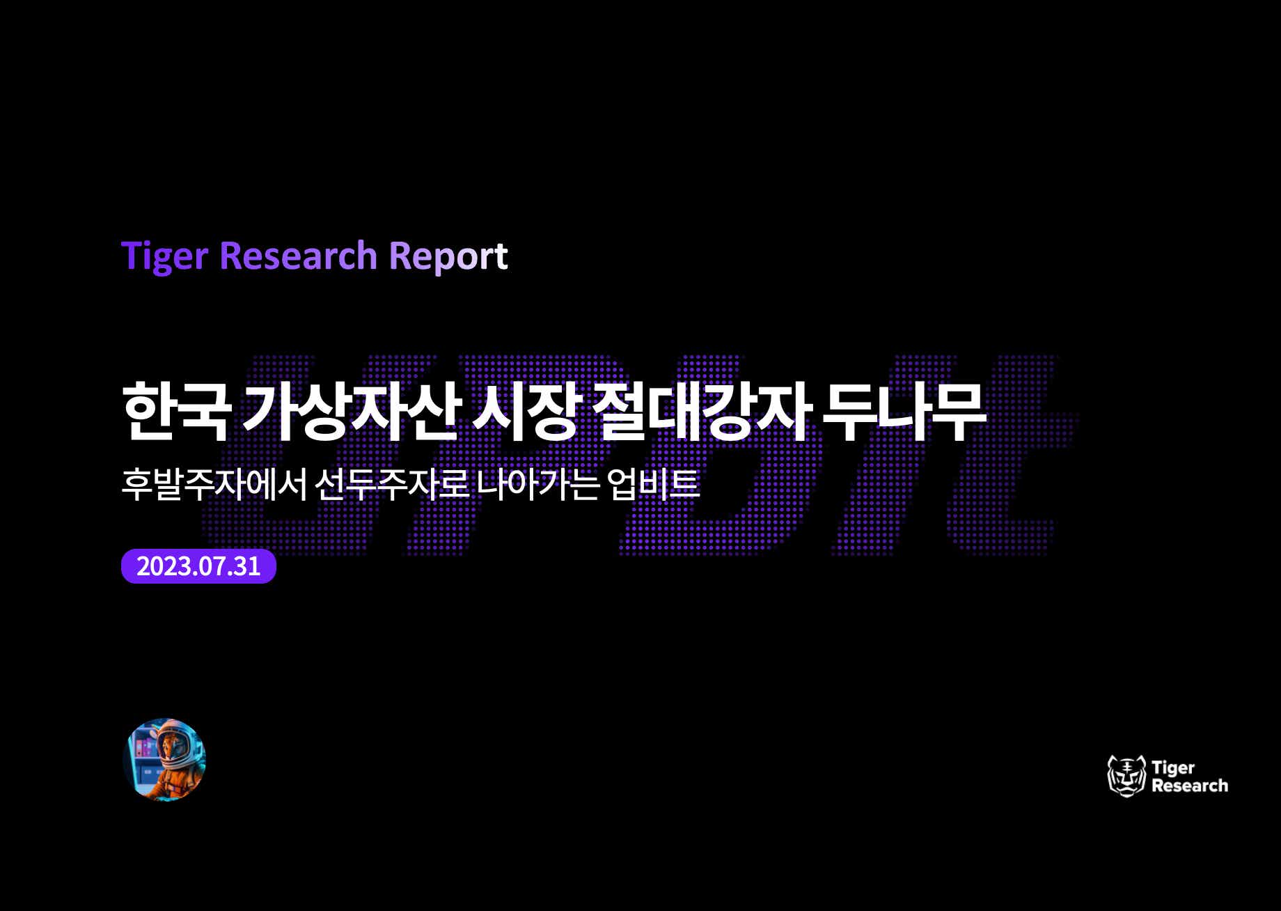 두나무가 과거 호황 대비 실적 급락, 수익 구조 다각화 측면에서 어려움을 겪고 있는 것은 사실이나, 가상자산 사업만큼은 여전히 독보적인 영향력을 자랑한다. 최근 업비트는 국내 가상자산 시장의 점유율의 약 90% 이상을 차지하며, 국내 시장 부동의 1위로서 입지를 더욱 단단히 하고 있다.
