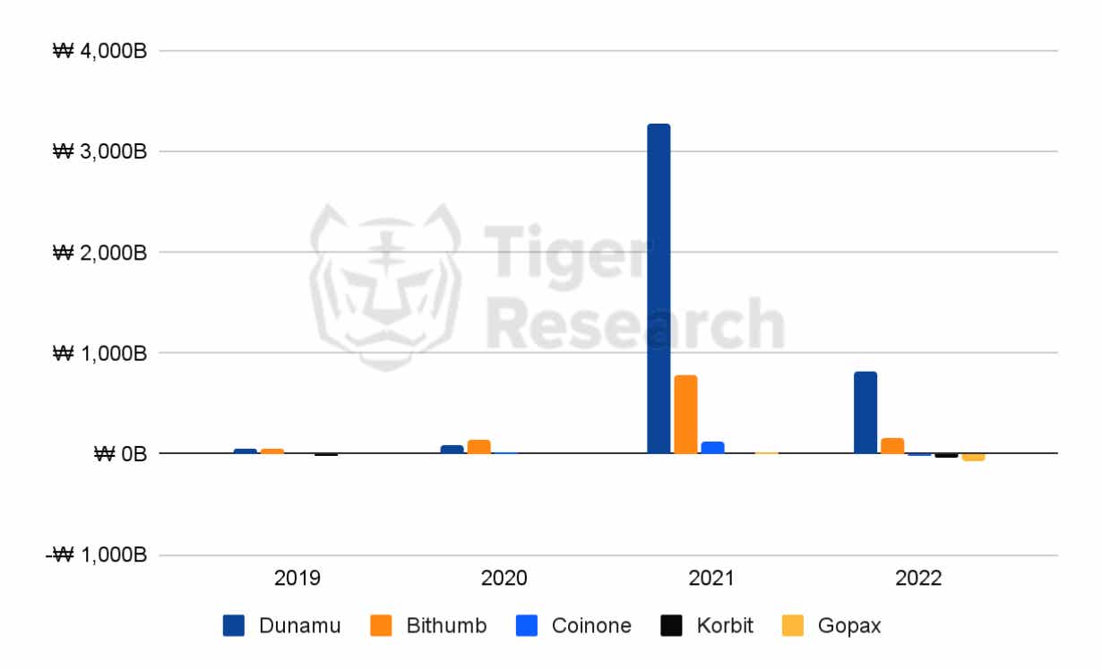 두나무는 국내 대표적인 가상자산 거래소 ‘업비트’ 운영사이며, 가상자산 거래소 사업을 바탕으로 눈부신 성장을 이룰 수 있었다.