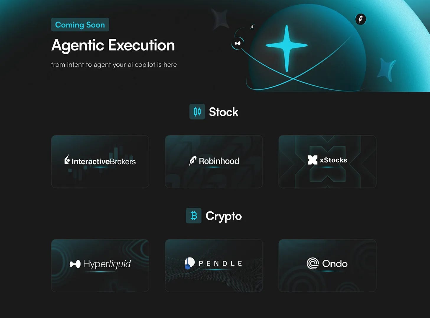 Lebih jauh lagi, Edgen akan segera menyediakan Agentic Execution, yang secara otomatis mengeksekusi permintaan investor menjadi transaksi nyata. Untuk saham, platform ini terhubung dengan layanan seperti Robinhood dan XStocks. Untuk kripto, integrasi dilakukan dengan protokol seperti Hyperliquid dan Pendle. AI copilot memahami maksud investor dan mengeksekusi transaksi secara langsung. Melalui kemampuan ini, Edgen melangkah melampaui sekadar platform kecerdasan finansial menuju platform operasi investasi yang menyeluruh.