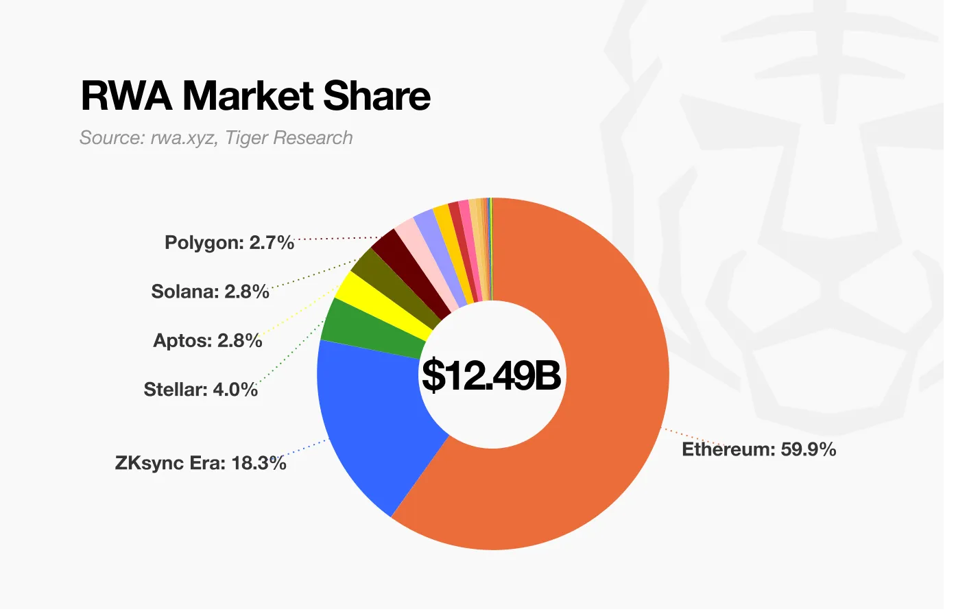 尽管竞争日益激烈,以太坊在RWA市场中仍保持着主导地位。专业的RWA区块链已经出现,Solana等在DeFi领域成熟的平台也正在向RWA领域扩张。即便如此,以太坊仍占市场活动总量的50%以上,突显了其现有地位的稳固性。
