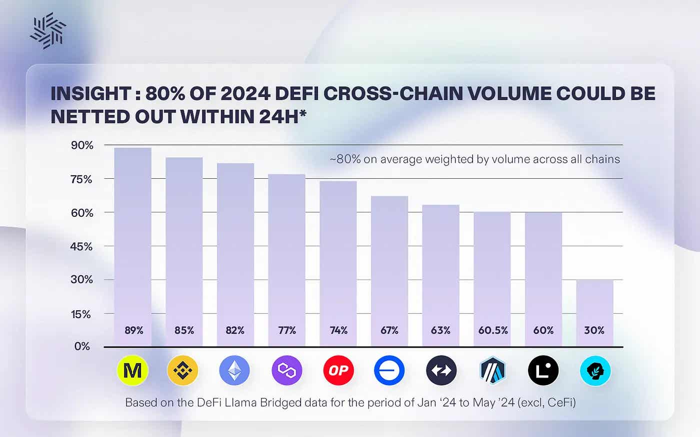 에버클리어는 이에 대한 해결책으로 전통 금융의 ‘클리어링’ 개념을 웹3에 도입하고자 한다. 에버클리어의 조사 결과, 일일 크로스 체인 거래량의 약 80%가 실제 자산 이동 없이 상계 처리 가능함을 확인하였다. 이는 클리어링이 웹3 환경에서도 유의미하게 적용될 수 있음을 시사한다.