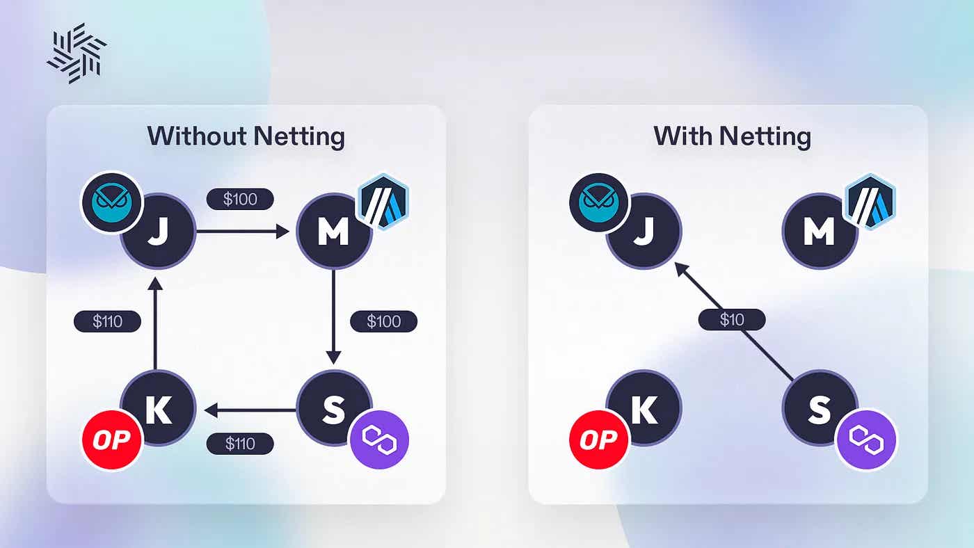 솔버가 겪는 비효율성의 문제는 전통 금융의 ‘클리어링(Clearing)’ 개념으로 부터 해결의 실마리를 얻을 수 있다. 클리어링은 다수의 거래를 상계(Netting)하여 실제 자산 이동을 최소화하고 효율성을 극대화하는 방식이다. 이 개념은 페이먼트 산업에서 광범위하게 활용되기도 한다.