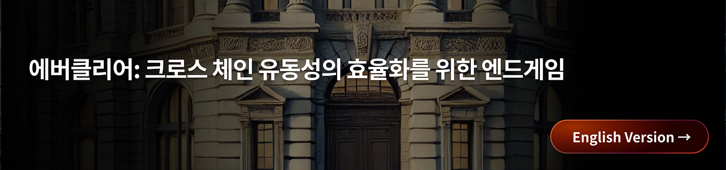에버클리어는 웹3 산업 내 최초로 클리어링 개념을 도입한 레이어로, 크로스 체인 유동성의 효율성을 극대화하는 것을 목표로 한다. 이 레이어는 크로스 체인 거래 시 발생하는 트랜잭션을 상계 처리함으로써 유동성 리밸런싱 문제를 해소하고, 유동성의 관리를 보다 효율적으로 수행할 수 있게 지원한다.