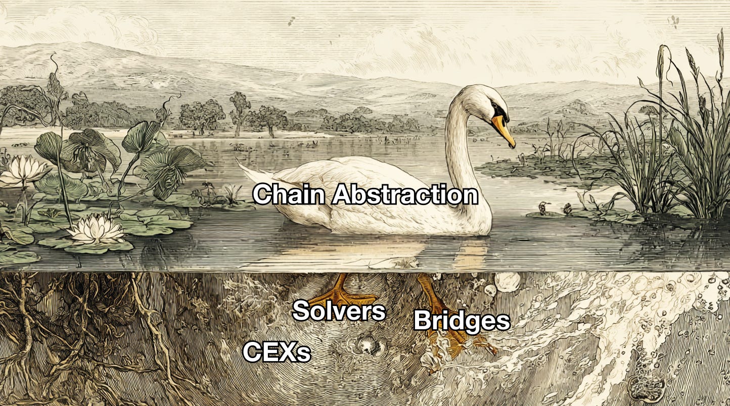 인프라 경쟁이 지속되며 블록체인 생태계는 유동성 분산과 높은 수수료 문제에 직면해 있다. 체인 추상화 솔루션들이 등장했으나 비효율성은 해결되지 않았다. 비용 부담이 브릿지에서 솔버로, 다시 거래소로 전가될 뿐이다.