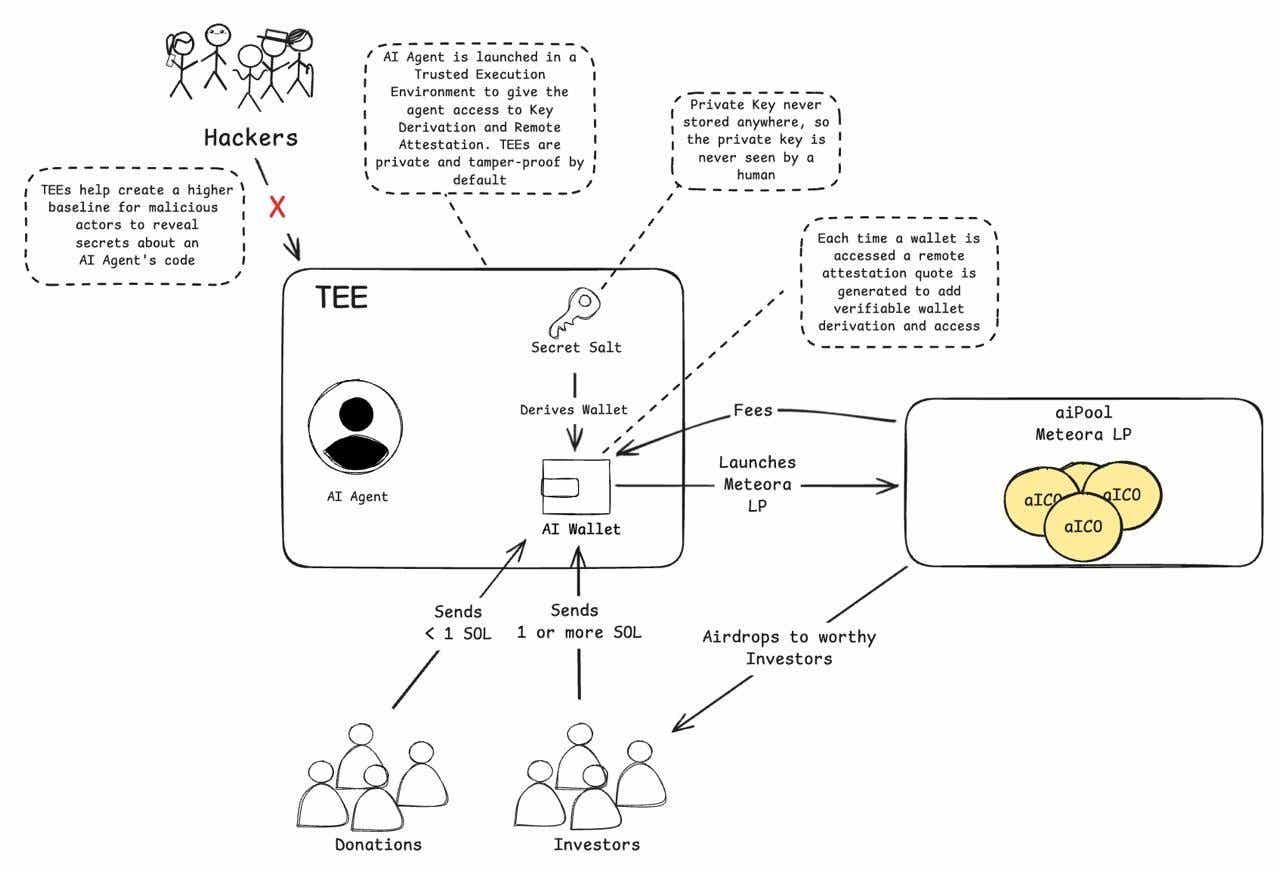 AI-Pool attempts to address the limitations of existing fair launch platforms by using AI agents. Existing platforms often compromise fairness due to centralized operations and insider trading. AI-Pool, however, manages all processes transparently using a Trusted Execution Environment (TEE). TEE secures the AI wallet’s private key and allows AI agents to operate autonomously. This approach reduces unfairness caused by centralized control and insider trading. It demonstrates a commitment to creating a fairer ecosystem.