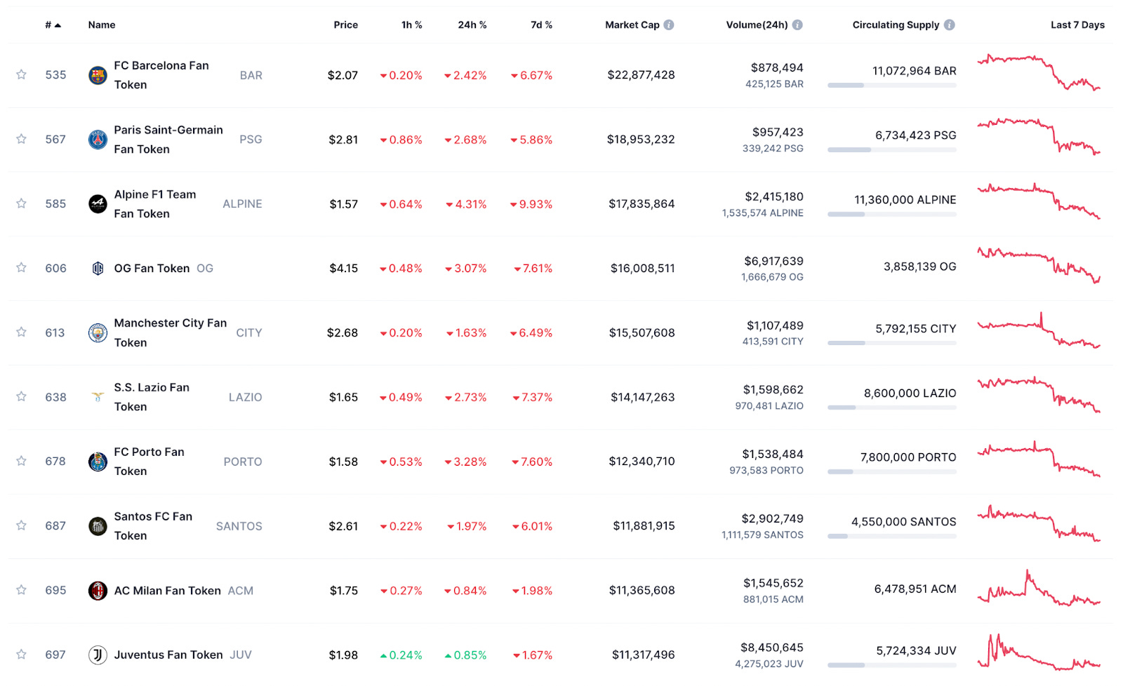How are fan tokens doing?