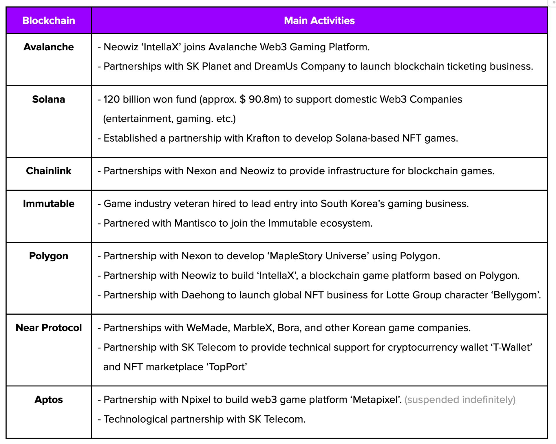 The South Korean market is clearly an attractive market for blockchain mainnets. However, entering the Korean market will be challenging, as large Korean companies and institutions tend to favor Korean-based projects that are familiar with the local language and business culture. Therefore, market penetration is expected to be difficult.