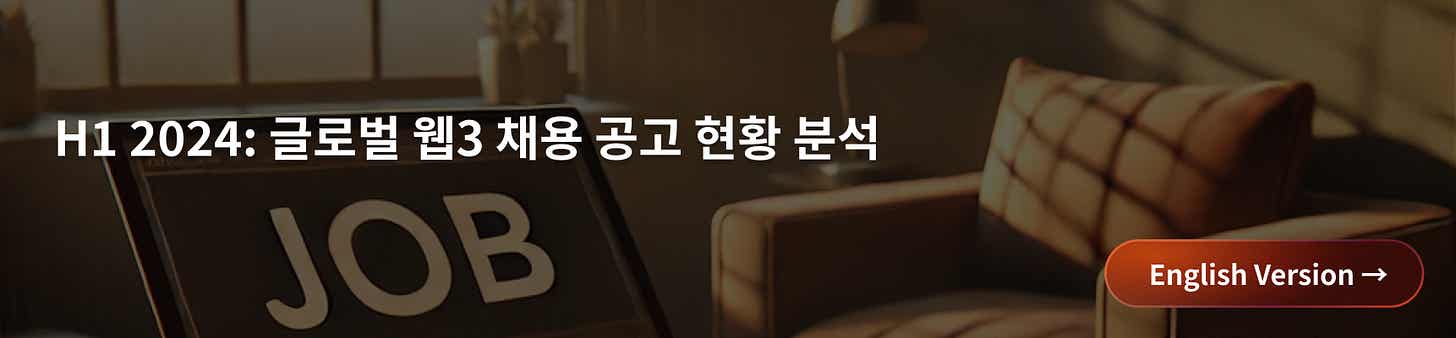 메인넷들의 아시아 시장 채용: 2023년 대비 메인넷들의 아시아 채용 절대 수치는 감소했으나, 이전보다 더 다양한 글로벌 메인넷들이 아시아 시장에서 채용을 진행함으로써 채용의 다양성은 오히려 증가했다.