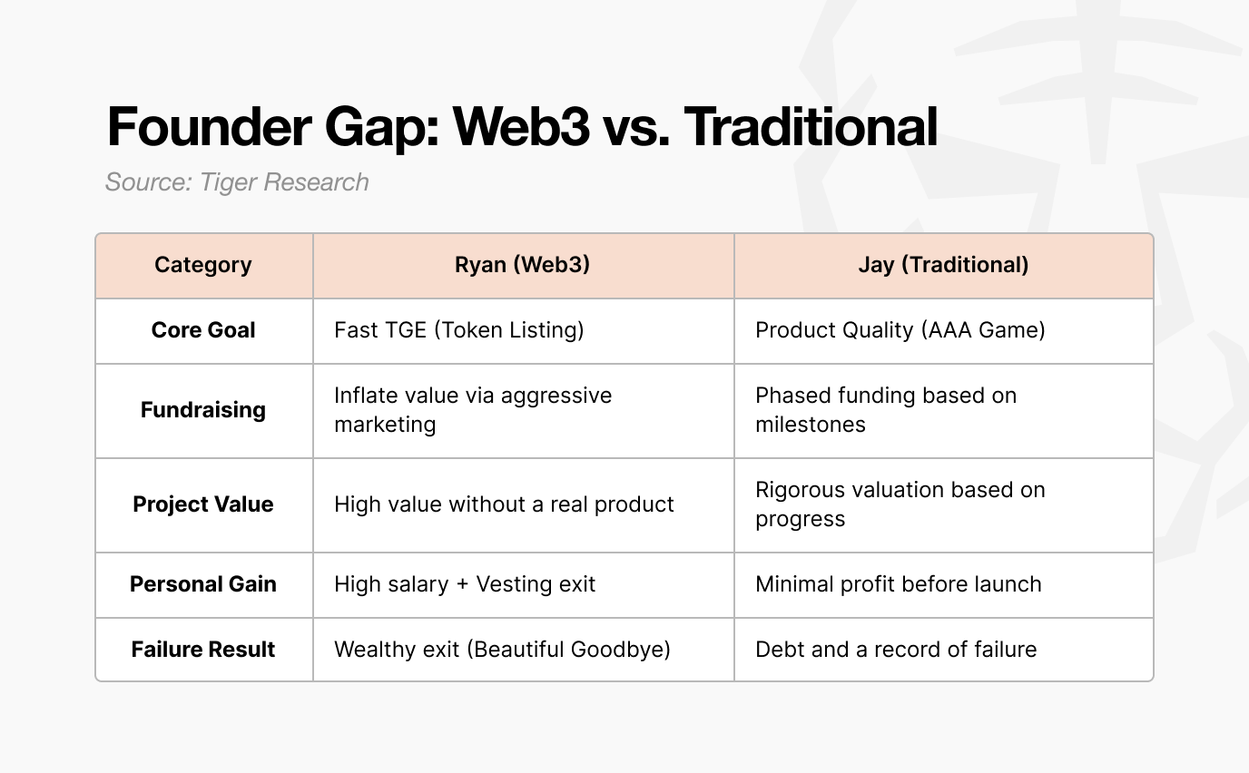 Neither case resulted in a successful product. However, the winner is clear: Ryan built wealth by exploiting the distorted valuation structures of Web3, while Jay lost everything attempting to build a quality product.