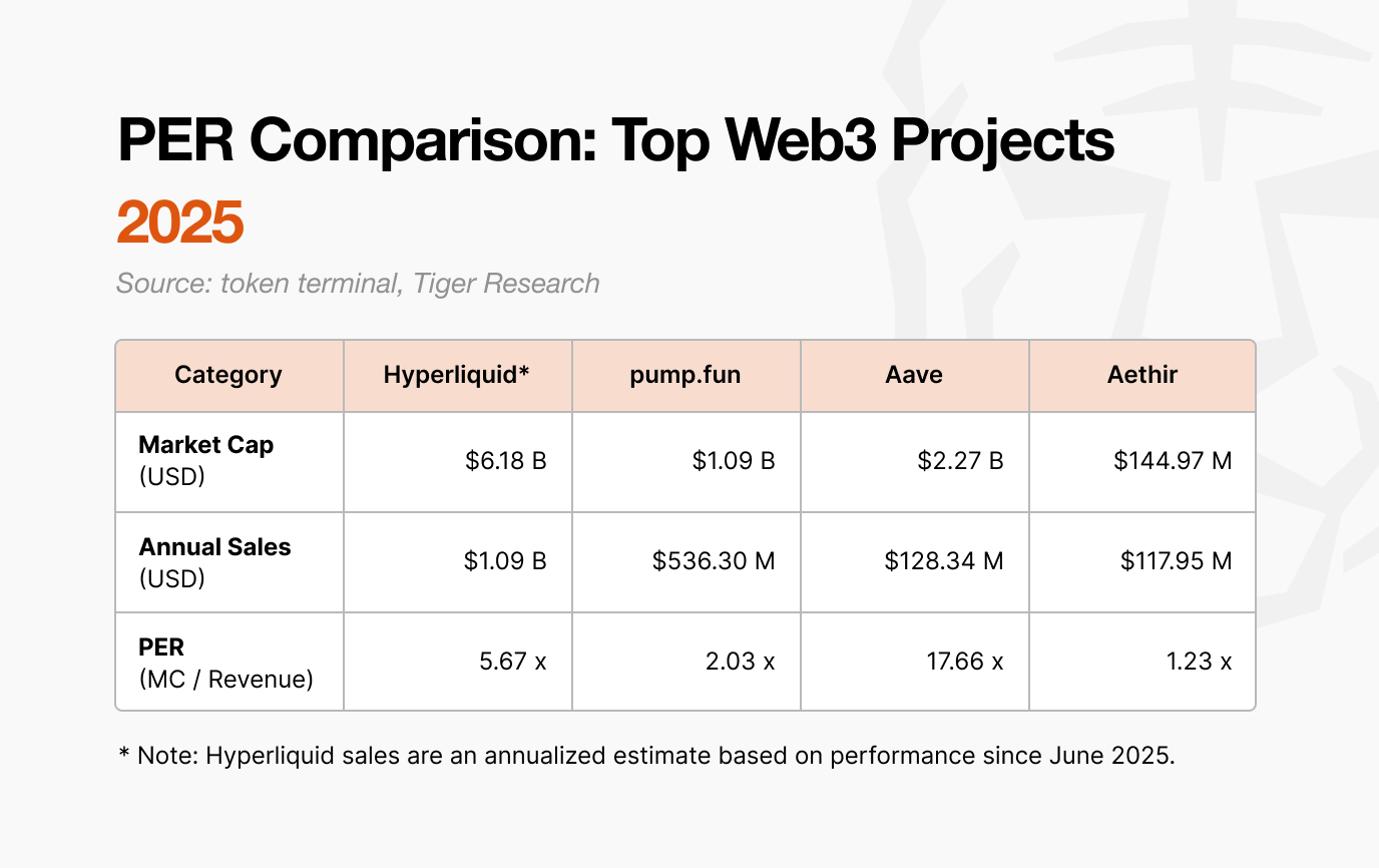 We can judge their value through the Price-to-Earnings Ratio (PER) of major earners like Hyperliquid and pump.fun. PER, found by dividing Market Cap by annual revenue, shows if a valuation is fair relative to actual income.
